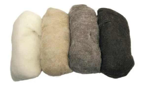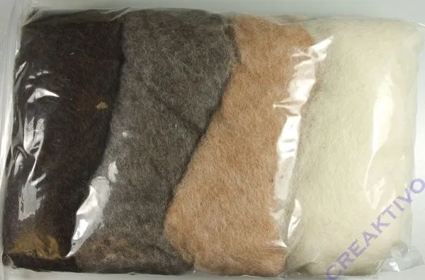 Reine Schurwolle, meliert, Braun-Töne, Vlies, Beutel 4 Farben à 25 g