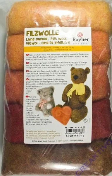 Reine Schurwolle, meliert, Gelb-Töne, Vlies, Beutel 5 Farben à 20g