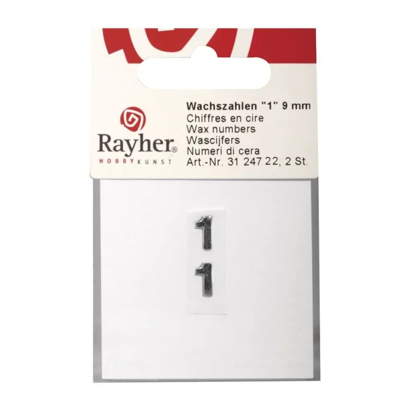Wachszahlen Ziffer 1 9mm 2 Stück silber
