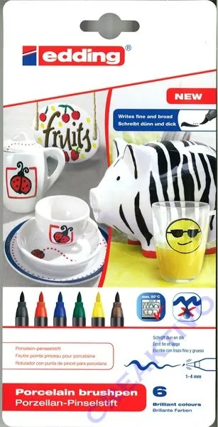 6 Porzellanstifte mit flexibler Pinselspitze für flächige und feine Arbeiten