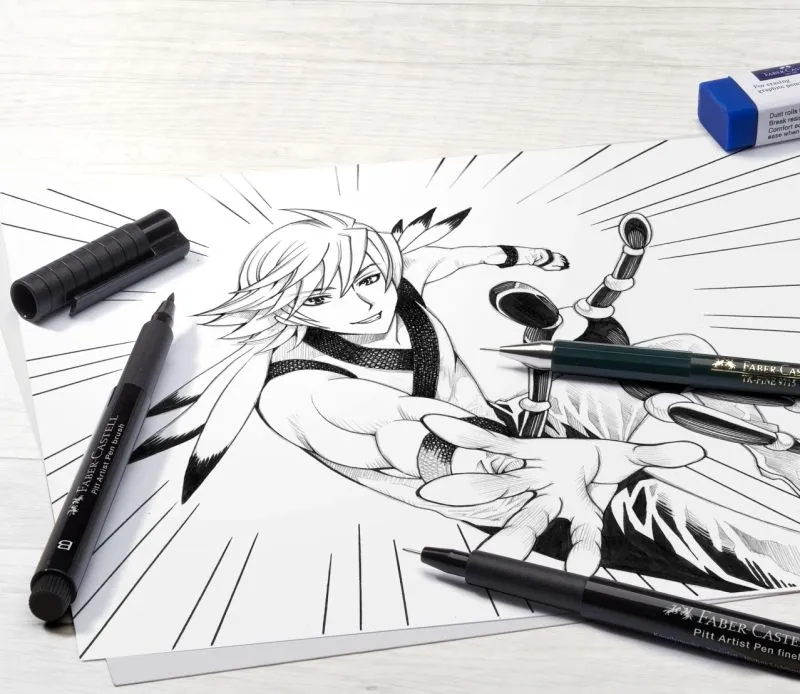 Tuschezeichnungen haben eine sehr lange künstlerische Tradition. Die Ausdruckskraft und Alterungsbeständigkeit, sowie die Kombinationsmöglichkeiten mit vielen anderen Maltechniken, machen das Medium von jeher für Künstler und Grafiker interessant. Faber-Castell hat all die Vorteile der Künstlertuschen in einem modernen, unkomplizierten Zeichenstift, dem Pitt Artist Pen, vereint. Die pigmentierte und hoch lichtbeständige Zeichentusche eignet sich ideal zum Anfertigen von Skizzen, Zeichnungen, Layouts, Modezeichnungen und Illustrationen.
