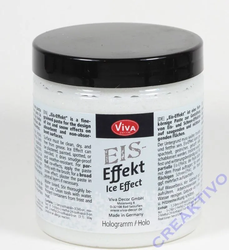 Eis-Effekt ist eine feinkörnige Paste zur Gestaltung von Eis- und Schnee-Effekten auf saugenden und nichtsaugenden Flächen.