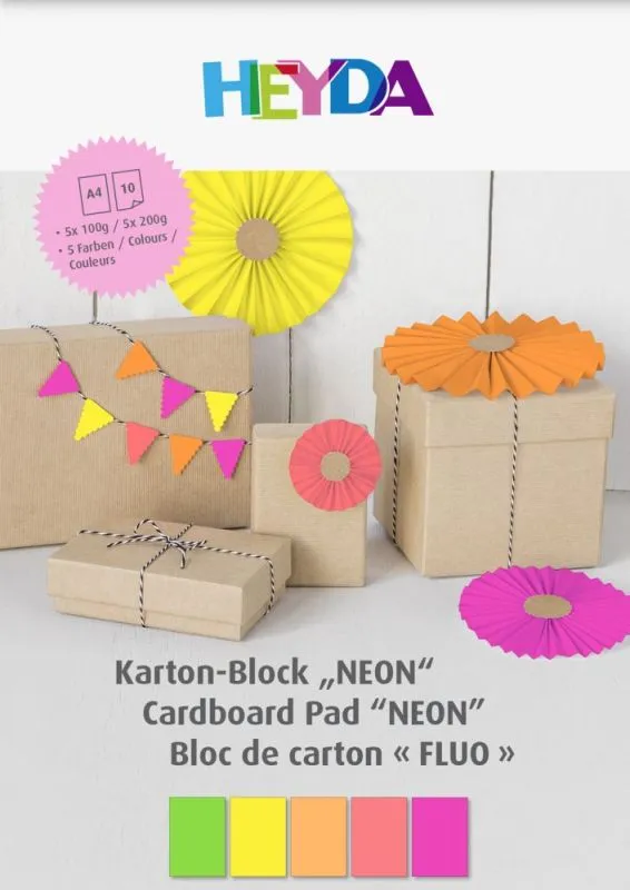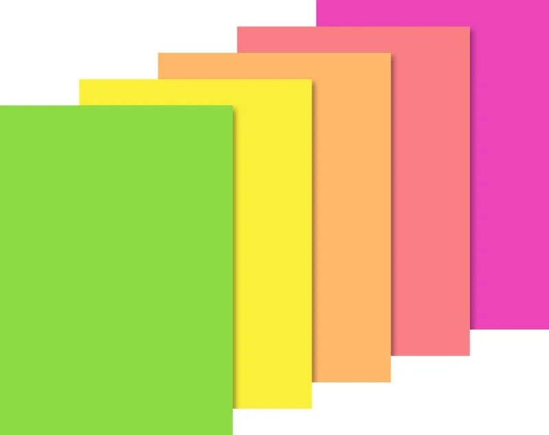 Neonpapier-Block A4 5 Farben: neon grün, neon gelb, neon orange, neon rot, neon pink