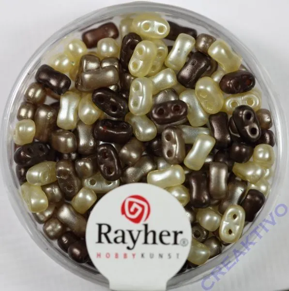 Twin-Rocailles verwachst 3x5mm Mix braun
